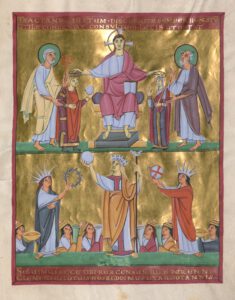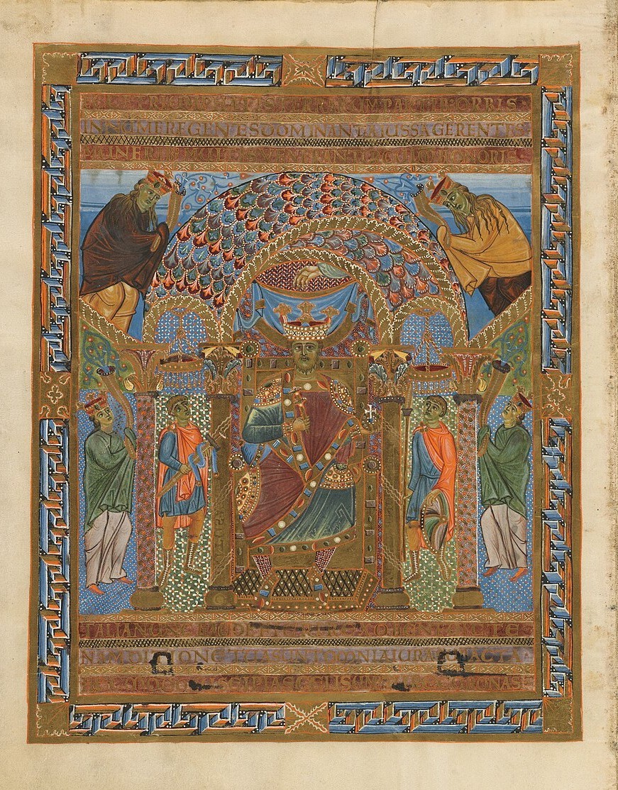Titel: Darstellung des thronenden Heinrich II. im Regensburger Sakramentar, Anfang 11. Jhdt.