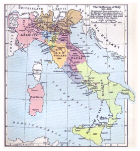 1861 wurde der italienische Staat ausgerufen. Erst 1870 waren die heutigen Grenzen erreicht.