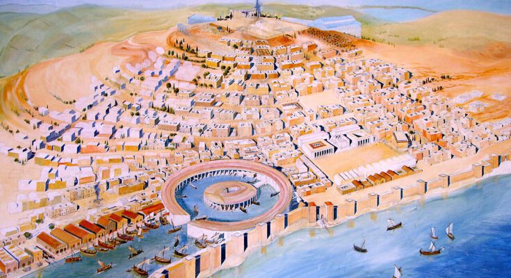 Karthago entstand im 9. Jahrhundert vor Christus als phönizische Gründung an der Küste des heutigen Tunesien. Der Ort war ideal gewählt: Eine gut geschützte Bucht, fruchtbares Umland und die Nähe zu den Handelsrouten zwischen Tyros, Sizilien und dem westlichen Mittelmeer. Aus diesem Stützpunkt entwickelte sich eine Macht, die bald eigene Kolonien anlegte und andere phönizische Siedlungen in ihre Einflusssphäre zog. Karthago besetzte strategische Positionen wie Sardinien, Teile Korsikas und die Balearen, erweiterte sein Netz bis in den Süden der Iberischen Halbinsel und kontrollierte wichtige Knotenpunkte an der nordafrikanischen Küste.